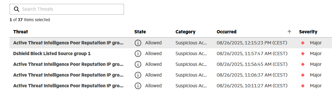 - Granular controls to filter out "Major" and "Minor" threats, not only "Critical".
